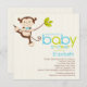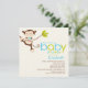 Beginnen Sie Ihre Safari Babydusche mit unserer Baby-Dusche im süßen Dschungel. Unsere Affen-Duscheinladung beinhaltet den süßesten kleinen Affen mit einer Krawatte aus Bugs, die auf einem Set aus einem Baumzweig auf einem beigen Streifen-Hintergrund mit einem Affen-Kotflügel schwingt. Besuchen Sie unseren Shop, um unsere passenden Dankeschön-Karten, Porto und Aufkleber zu sehen. ©Petit Tatti
