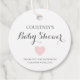 Niedliche Baby Shower Fevor Tags mit einem schlichten und minimalistischen Design mit einem pastellrosa Herz zusammen mit "Baby Shower" in einem skurrilen Schriftart und der Meldung "Danke, dass Sie unser Baby mit Liebe duschen". Die Rückseite hat Ihre personalisierte Danksagung über einen rosa Hintergrund. Diese eleganten Gefallen-Tags sind eine gute Möglichkeit, um den Favoriten Ihrer Babydusche eine persönliche Touch hinzuzufügen.