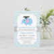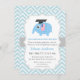 Feiern Sie den Meilenstein beim Abschluss des Kindergartens oder der Grundschule für Kinder mit einer Abschlussfeier! Dies lädt mit einem niedlichen blauen Elefanten mit einem akademischen Platz ein, der perfekt für Eltern, Lehrer und Schulen ist, die eine Abschlussfeier oder Zeremonie für die geschlossen Kinder planen! Elefant passt, weil sie eines der intelligentesten Tiere sind. Klassischer und eleganter pastellblau-weißer Zickzack Zickzack-Hintergrund. Personalisieren Sie einfach Ihre Party-Daten.