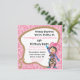 Niedliches kleines Mädchen in Cowgirl lädt Sie zu ihrem Geburtstag ein. Rosa Bandana Hintergrund und Raum für Ihre individuelle Kopie in der Lasse. Handzeichnung von McBoo