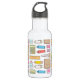 Eine Wasserflasche mit niedlichen Doodles von Schulmaterial, die Taschenrechner, Bleistift, Stifte, Notizbuch, Schere, Radierer, Kleber usw. enthalten. Ideal für Kinder zur Schule!