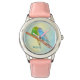 Kinderuhr aus Edelstahl mit rosa Lederarmband