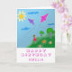 Niedliche Kites und Mädchen Zeichnend Happy Birthday Card. Niedlich zeichnend für Kinder. Mädchen zwei Drachen, rosa und gelb stehend auf Gras mit Bäumen und Blume. Die Drachen fliegen zwischen Wolken am Himmel und die Sonne scheint. Personalisieren Sie die Karte mit dem Namen Ihres Kindes. Ein Mädchen Liebe diese personalisierte Geburtstagskarte.