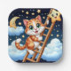 Niedliche Kitty Climbs Ladder zum Mond Pappteller