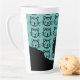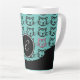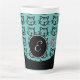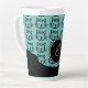 Mehrere schwarze Katzen mit einem Single rosa Katze auf einem aquamarinen Hintergrund. Eine tolle personalisierte Latte-Tasse! Anpassbar mit dem Monogramm. Entworfen von Robin D. Cox.