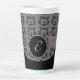 Mehrere schwarze Katzen mit einer rosa Single auf grauem Hintergrund. Eine tolle personalisierte Latte-Tasse! Anpassbar mit dem Monogramm. Entworfen von Robin D. Cox.