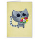 Graue Katze mit niedlichen Blumen. Ein niedlicher und entzückenderes kawaii illustrierte graue Katze. Perfektes Kätzchen mit niedlichen großen runden schwarzen Augen hält entzückende kawaii Blumen (niedliche Tulpen). Gerade süß! Katzenillustration durch Madame Colonelle