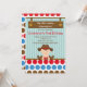 Gründen Sie Ihr süßes kleines Cowboygeburtstags-Party weg vom Recht mit unserer niedlichen Babycowboy-Kindergeburtstageinladung, die einen Babycowboy kennzeichnet, der eine Windel, Cowboystiefel und Hintergrund des blauen Streifens des Cowboyhuts mit einer roten, blauen u. braunen Grenze und einer Rückseite trägt. Niedlich für ein Westerngeburtstags-Party für den ersten Geburtstag eines Babys. Besichtigen Sie unser Geschäft, um andere Geburtstag-Party Einladungen anzusehen u. zusammenpassend danke Anmerkungen, Aufkleber u. Porto-Briefmarken. © JW Illustrationen