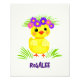Niedliche kleine gelbe Ente mit Blume und grünem Gras