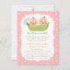 Zweimal die Liebe und doppelt die Freude! Es gibt zwei süße kleine Erbsen in einer Hülle für die Mama zu sein, wer erwartet Baby Mädchen! Design bietet niedlichen Babys, die in einer Dose sitzen. Weine, Blume und verlassend Keime aus dem Ende der Hülle. Hellrosa Polka-Punktmuster für den Hintergrund. Ideal für Eltern, die Zwillingsmädchen haben! Personalisieren Sie einfach Ihre Party-Details.