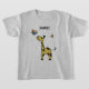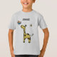 T - Shirt mit niedlicher kleiner Giraffe in gelb-orange mit einem Vogel und einer Biene. Sie können den Namen, den Schriftart, die Größe und die Platzierung anpassen, der Text ist vollständig editierbar. Auch können Sie die Bildgröße ändern.