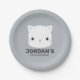 Ein niedliches Design, das Ihren Tag aufhellt. Dieses Design zeichnet sich durch niedliche kleine Katze mit personalisiertem Namen in grau modernen Sans Serif Schriftart Stil auf hellgrauem Hintergrund. Perfekter Geburtstagsgeschirr für Kinder.