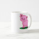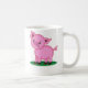 Dieses niedliche kleine rosa Cartoonschwein steht auf einem Flecken des Grases und lächelt an seinem neuen Inhaber, Sie.