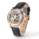 Uhr, Klassische Damenuhr mit schwarzen Lederarmband
