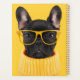 Französischer Bulldog Welpe mit gelbem Pullover und Brille