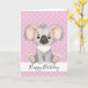 Wildbaby Koala Geburtstag süße Baby Koala personalisierte Babykarte für ein kleines Mädchen oder einen kleinen Jungen. Klicken Sie auf die Schaltfläche "Anpassen!", um die Textgröße, Textfarbe, den Stil des Schriftartes und mehr zu ändern!