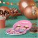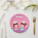 Papierplatte dieser Partyversorgungen kennzeichnet zwei niedliche Köche des kleinen Mädchens in den Schürzen und in den Kochshüten. Das Mädchen mit der Haarspange knetet den Teig, während das Mädchen mit dem Pferdeschwanz den Teig mischt. Farbpalette von rosa und von Lila ist girly und Bonbon für ein Geburtstagsmädchen! Dienen Sie Ihre Partynahrung auf diesem Teller! Addieren Sie Ihre Partymitteilung!