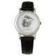 Uhr, Klassische Damenuhr mit schwarzen Lederarmband