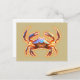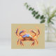 Eine lebendige, fast schon rieszierende Krabbe steht vor einem schlichten sandfarbenen Hintergrund, dessen Krallen aufgewachsen und bereit sind. Die Muschel und Gliedmaßen der Kreatur leuchten mit einem Farbspektrum, das ein Gefühl von Leben und Bewegung vermittelt.