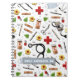 Medizinisches Notizbuch mit Pflegeartikeln und Blume. Text bearbeiten, um Namen hinzuzufügen.