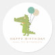 Niedliches Krokodil mit Balloons Zeichnend Personalisiertes Geburtstagsgeschenk Klassischer Rundsticker