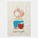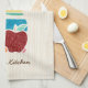 Mit diesem niedlichen Küchentuch im Landhausstil mit handgezücktem Set aus Holzlöffeln und Küchenutensilien in einem türkisfarbenen Topf, umgeben von einem köstlichen, roten Apfel und frischem Obst, vervollständigen Sie Ihre Küche mit einer Touch Heimeligkeit. Dieses Landküchendesign auf einem hellen Holzmuster-Hintergrund kann durch Hinzufügen Ihres Namens personalisiert werden.