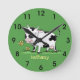 Niedliche Kuh auf Grünflächen Cartoon Abbildung Runde Wanduhr