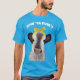 Der Slogan auf diesem grafischen Tee ist bereit, mit Ihrer eigenen Nachricht individuell angepasst zu werden. Die fett gedruckten weißen Buchstaben werden über einer Abbildung einer niedlichen Kuh mit gelbem Bogen dargestellt.