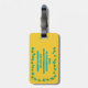 Die Vorderseite dieser Gepäckanhänger ist bereit, mit einem Set von Initialen versehen zu werden und zeigt meine bemalte Abbildung einer Kuh, die ein gelbes Bogen-Set vor einem türkisblauen Hintergrund trägt. Auf der Rückseite sind Illustrationen von morgendlichen glorreichen Blume zu sehen, und sie sind bereit, mit Ihrem Namen und Kontaktdaten personalisiert zu sein, um die türkisblaue Schrift zu koordinieren.