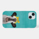 Fügen Sie Ihrem Telefon eine niedliche Touch mit diesem Gehäuse hinzu. Es zeigt meine gemalte Abbildung einer Kuh, die ein gelbes Bogen-Set vor einem türkisblauen Hintergrund trägt.