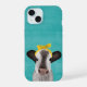 Niedliche Kuh mit Bow Turquoise Blue iPhone 15 Hülle