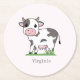 Funny Pink Untersetzer mit einer niedlichen Kuh auf Gras und einem anpassbaren Namen. Eine tolle Idee für Ihre Empfänge mit Freunden, Familie oder Bauer Party!