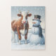 Niedliche Kuh & Schneemann im Winterfeld Puzzle