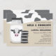 Wenn Ihr Baby Dusche Thema Milch und Cookies ist, dann ist diese Einladung perfekt! Dieses Design umfasst eine Milchflasche und eine niedliche Kuh vorne mit einem Keksstapel. Die Farben sind schwarz, weiß und ekru.