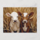 Eine charmante Darstellung zweier merkwürdiger Kuhkälber, die inmitten eines großen, goldenen Maisfeldes unter blauem Himmel stehend sind. Diese bezaubernde Landschaft bringt ein Gefühl von ländlicher Ruhe und Wärme, perfekt für landschaftliche Projekte oder gemütliche Bauerndekoration.