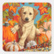 Niedliche Labrador Retriever Welpe Herbsternte Quadratischer Aufkleber