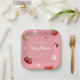 Teller mit niedlichen Lovebug-, Kuchen-, Blume- und Erdbeerabbildungen in rot, weiß und hellbraun. Zusammen mit den Illustrationen sind ein spielerischer Skript-Schriftart und eine elegante Sans Serif, in dem alles, was Sie personalisierte Informationen geschrieben werden. Karo in unserem Shop für weitere Artikel aus dieser Kollektion.