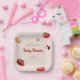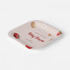 Teller mit niedlichen Lovebug-, Kuchen-, Blume- und Erdbeerabbildungen in rot, weiß und hellbraun. Zusammen mit den Illustrationen sind ein spielerischer Skript-Schriftart und eine elegante Sans Serif, in dem alles, was Sie personalisierte Informationen geschrieben werden. Karo in unserem Shop für weitere Artikel aus dieser Kollektion.