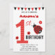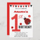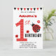 Einladung zum Geburtstag mit niedlichem Ladybug-Thema und Schwarz-Rot-Farbkombination.