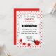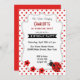 Einladung zum Geburtstag mit ladybug Thema und rotem Punkt Hintergrund.
