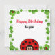 Niedlicher, glücklicher Ladybug umgeben von viel Glück vier Blatt Kleeblatt Geburtstagskarte. Ideal für alle. Lady Bug ist ein universelles Glückssymbol! Ideal für Kinder und Erwachsene!