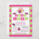 Moderne und niedliche Babydusche mit einem heißen rosa Ladybug mit einem hübsch rosa und gelben Set aus Blume auf einem rosa- und federgrünen Streifen Hintergrund mit niedlichem Ladybug-Akzent und festlichen Anhängerbannern. Dreh unsere Einladung, um einen passenden Rücken für eine besondere Touch zu sehen. Perfekte Einladung für eine Lady bug themed Baby Dusche Einladung für eine kleine Mädchen Dusche für Frühling und Sommer.