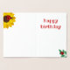 Goldfolie Geburtstagskarte in weißen Ladybugs auf Sonnenblumen und grünen Blätter. Personalisieren Sie die Geburtstagskarte mit dem Alter des Geburtstagsmädchens. Im Inneren der Karte befinden sich zwei weitere Ladybugs mit Sonnenblume und einem grünen Zweig von Blätter, zusammen mit "Happy Geburtday" in ladybug rot geschrieben.
