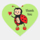 Niedliche Ladybug und Herz auf Grün Vielen Dank Herz-Aufkleber