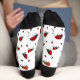 Whimsikale Ladybugs gemusterte Socken mit niedlichen handgezogenen roten Ladyvögeln und schwarzen Polka-Punkten auf Weiß