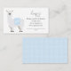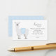 Benutzen Sie diese Einladungseinsatzkarten, um Babypartygäste einzuladen, einen Satz Windeln zu holen, damit eine Möglichkeit einen Preis an der Dusche gewinnt. Kennzeichnet ein niedliches, glückliches Lama mit einer blauen Decke mit Babyfuß-, weißempolkapunktmuster auf der Rückseite und grauer Typografie. Groß für Frühlings- oder Sommerbabyduschen-Partys.