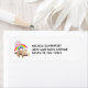 Rücksendeadressen-Aufkleber mit einer Illustration mit einem lustigen braunen Faultier, der glücklich auf einem Baumzweig lasiert. Ein farbenfroher Regenbogen hinter ihm, zusammen mit einer rosa Sonne, die über den Kopf schwebt. Niedlich, bezaubernd und trendig.