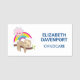 Namensschild mit einer Illustration, die einen lustigen braunen Faultier zeigt, der glücklich auf einem Baumzweig lasiert. Ein farbenfroher Regenbogen hinter ihm, zusammen mit einer rosa Sonne, die über den Kopf schwebt. Niedlich, bezaubernd und trendig.
