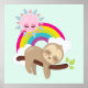 Niedliche Lazy-Sloth mit Sun & Rainbow Poster