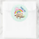 Niedliche Lazy Sloth mit Sun & Rainbow Vielen Dank Runder Aufkleber